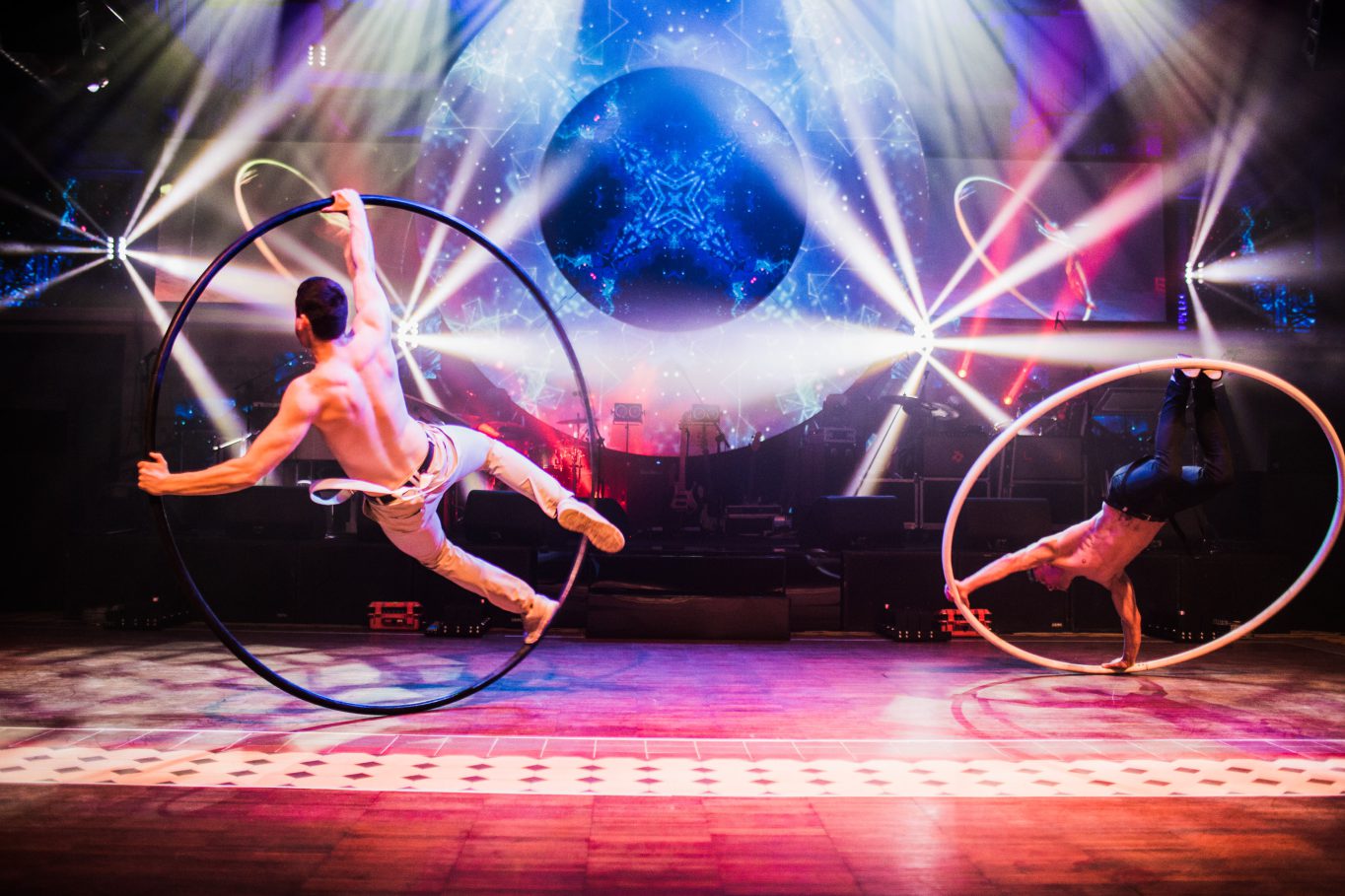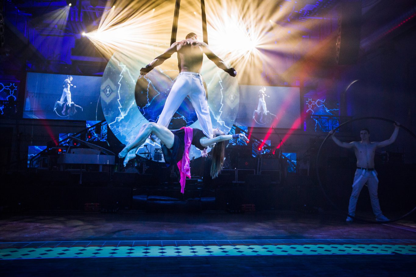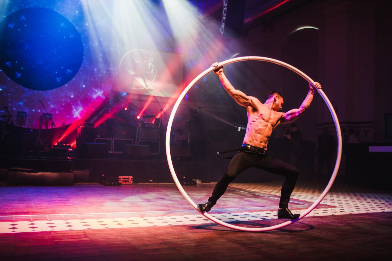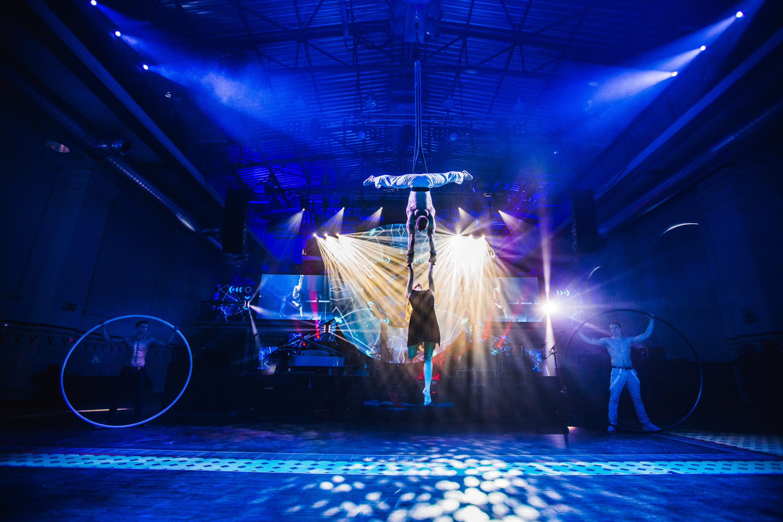 Na początek zgromadzonych gości przywitał niezwykły spektakl multimedialno – artystyczny w wykonaniu grupy akrobatów. Na tle imponujących rozmiarów przestrzeni projekcyjnej pojawili się niemal lewitujący artyści. Podniebnym akrobacjom towarzyszył niezwykły pokaz duetu akrobatów na kole. Spektakularny występ stopił się z przygotowaną specjalnie na potrzeby tego jubileuszu animacją multimedialną opowiadającą historię firmy Immergas w Polsce, tworząc zapierające dech w piersiach widowisko artystyczne.