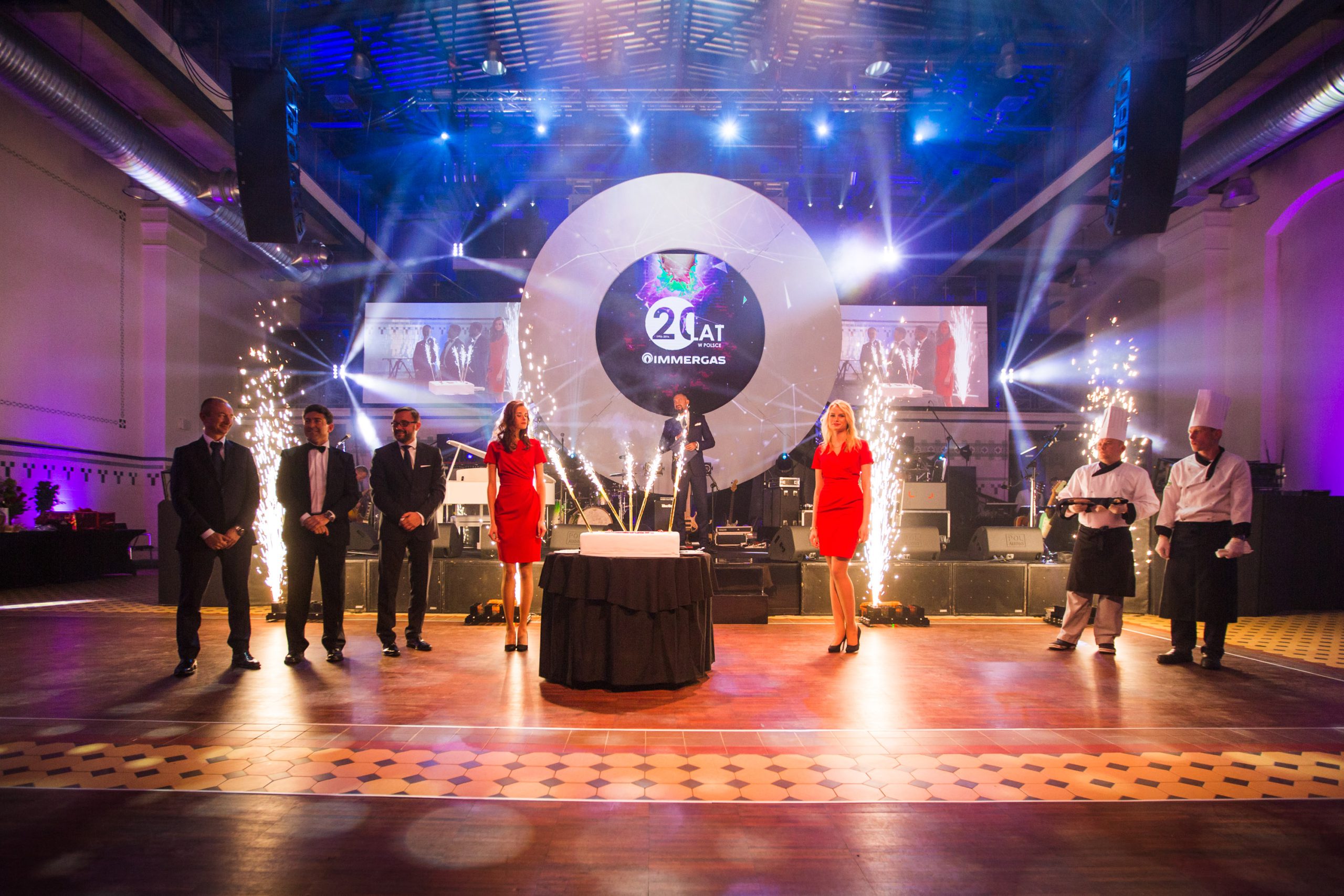 Niebywałe wrażenie na zaproszonych ponad 250 gościach wywołało już samo wejście na salę – ogromna przestrzeń sceniczna sięgająca kilkunastu metrów wysokości zbudowana z najnowocześniejszych nośników multimedialnych. Krystaliczna jakość obrazu oraz niesłychanie porywająca gra świateł, odegrały niewątpliwie ogromną rolę, idealnie wkomponowując się w przemysłowe wnętrza EC1. Dekoracja sali, utrzymana w klimacie czerwieni i czerni z ciepłym światłem oraz ogniem, stanowiła nawiązanie do profilu działalności Immergas.