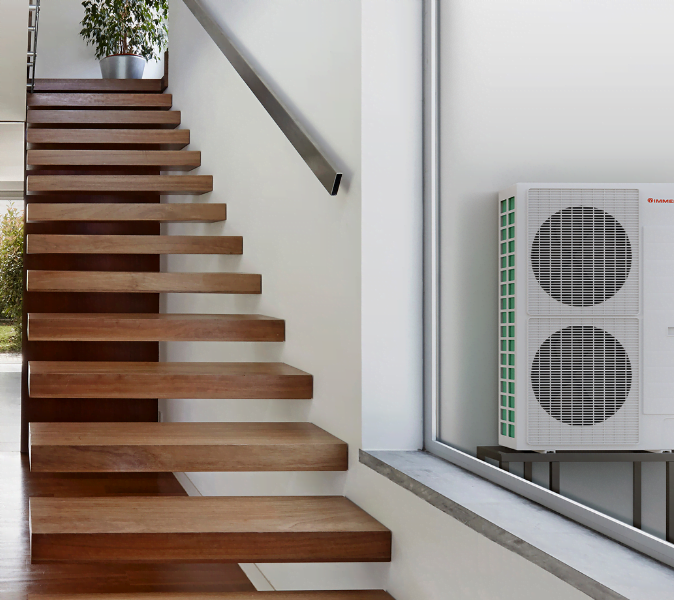 Szczególnie mało problematyczne są pod tym względem powietrzne pompy ciepła typu split dostępne w ofercie Immergas. Jedną z jednostek montuje się na zewnątrz budynku, druga z kolei może zostać zabudowana np. szafką wiszącą – w łazience, kuchni czy pralni. Dzięki temu nie zaburza przy okazji estetyki lokalu i pozostaje w zasadzie niezauważalna. Jednostkę zewnętrzną montuje się natomiast około 30-60 cm nad ziemią, na fundamencie budynku. Zachowanie tej wolnej przestrzeni jest istotne ze względu na konieczność pozostawienia nieco miejsca na odprowadzanie skroplin z urządzenia. Wymiary jednostki zewnętrznej można przedstawić na przykładzie pompy ciepła o mocy 9 kW – osiąga wówczas 95 cm szerokości, 100 cm długości oraz 40 cm głębokości.
