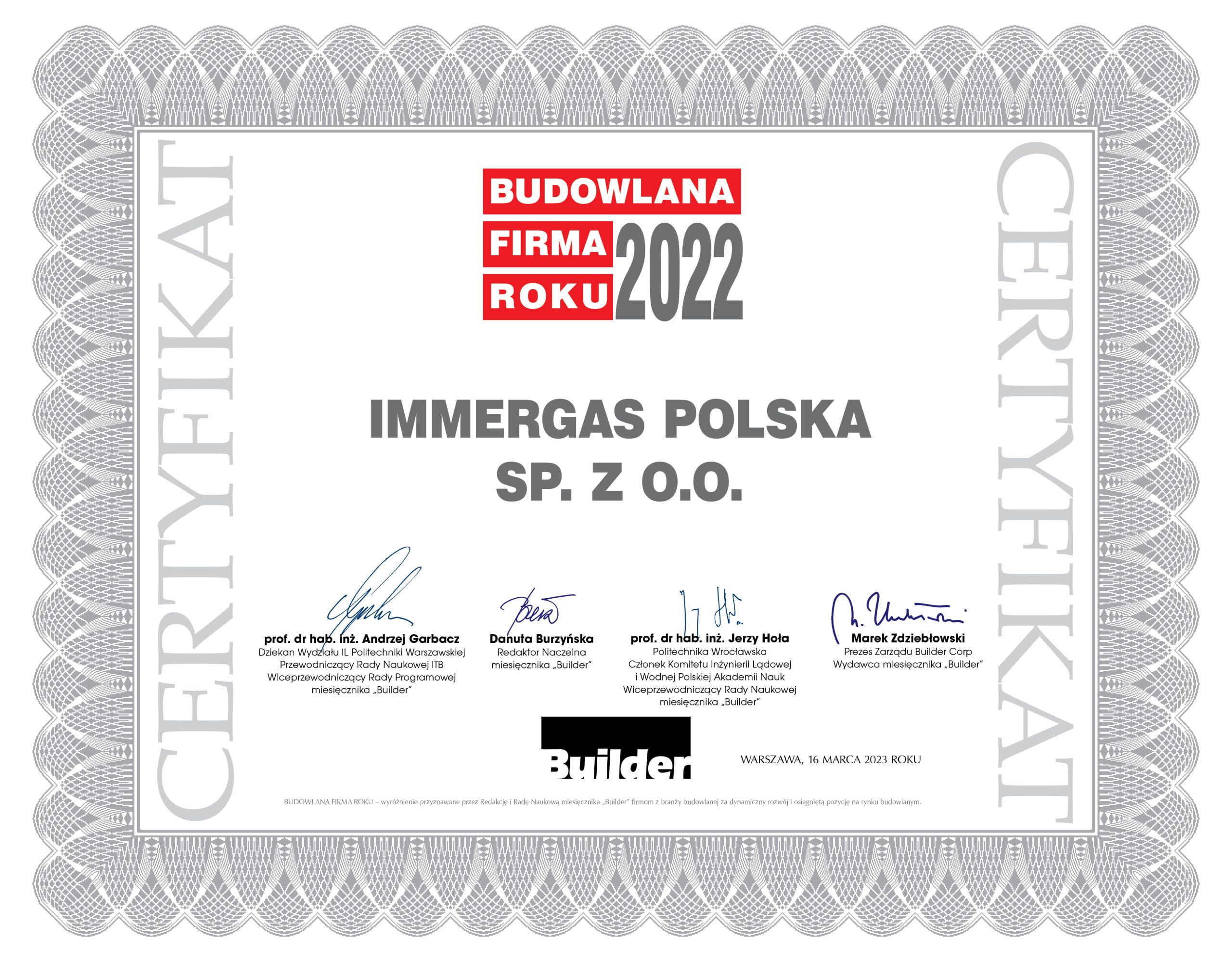 Builder Awards to wydarzenie, stawiające na pierwszym planie budownictwo, sukcesy firm, ich dynamiczny rozwój i osiągnięcia, a przede wszystkim ludzie – osobowości branży, które efektywnie zarządzają firmą i poszerzają jej potencjał i zasoby oraz przewagę konkurencyjną. Te prestiżowe nagrody przyznawane są raz do roku przez Redakcję i Radę Naukową miesięcznika Builder Polska.