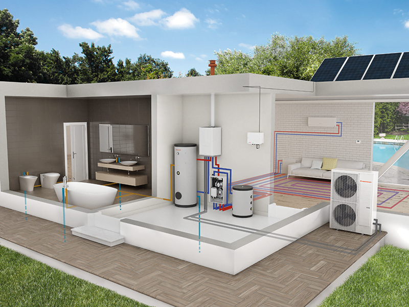 • Brak konieczności wydzielenia kotłowni – pompa ciepła może być zamontowana w zasadzie w dowolnym miejscu; np. nieużywanej części garażu lub pomieszczenia technicznego.