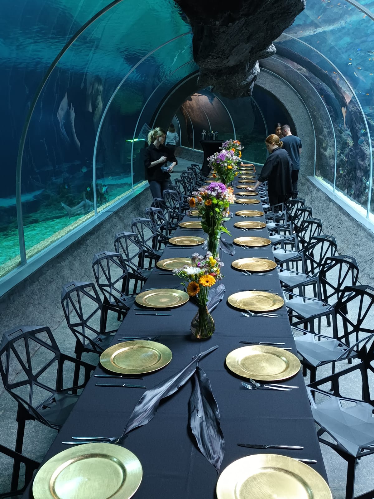 Zakończenie dnia było równie niezwykłe, jak jego początek. Wyobraźcie sobie kolację w otoczeniu majestatycznych ryb i rekinów! To była podróż do głębin oceanu, a każdy kęs był tak niezwykły jak otaczające nas stworzenia.