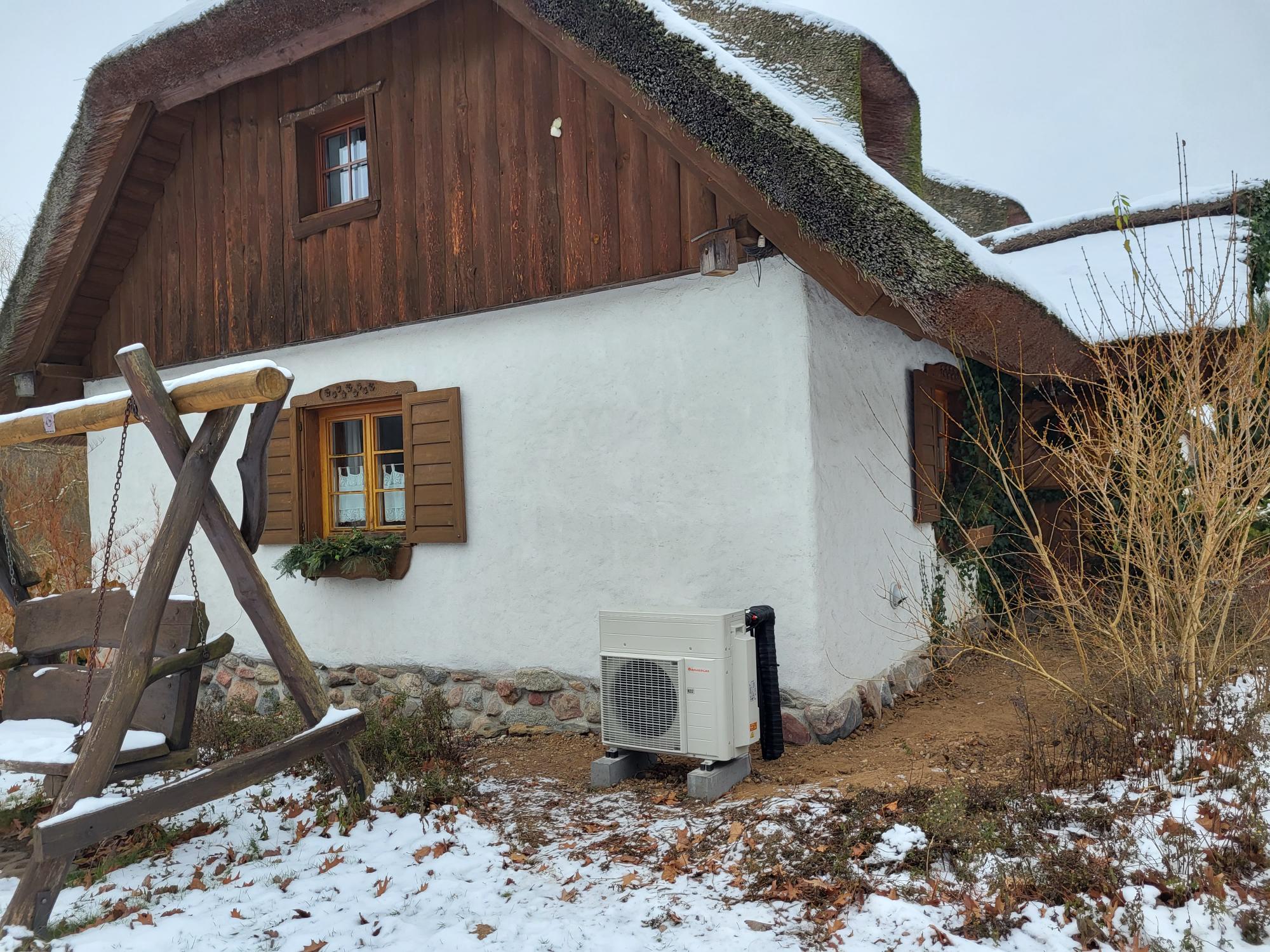 Osada Karbówko to kompleks wypoczynkowy położony nad Drwęcą, oferujący pobyt w drewnianych domkach inspirowanych wiejską architekturą oraz w zabytkowym wiatraku. Hybrydowe pompy ciepła Victrix Hybrid są odpowiedzialne za ogrzewanie pojedynczych domków o powierzchni około 100 m². Hybrydowa pompa ciepła Magis Combo 16 Plus V2 T odpowiada za ogrzewanie drewnianego budynku wiatraka o powierzchni około 130 m² oraz przygotowanie ciepłej wody użytkowej