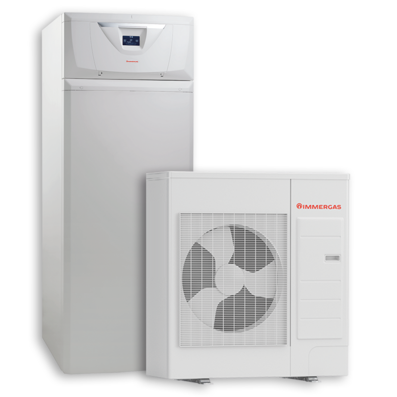 Powietrzna pompa ciepła typu split składająca się z jednostki zewnętrznej oraz jednostki wewnętrznej z wbudowanym buforem c.o. oraz zasobnikiem c.w.u.