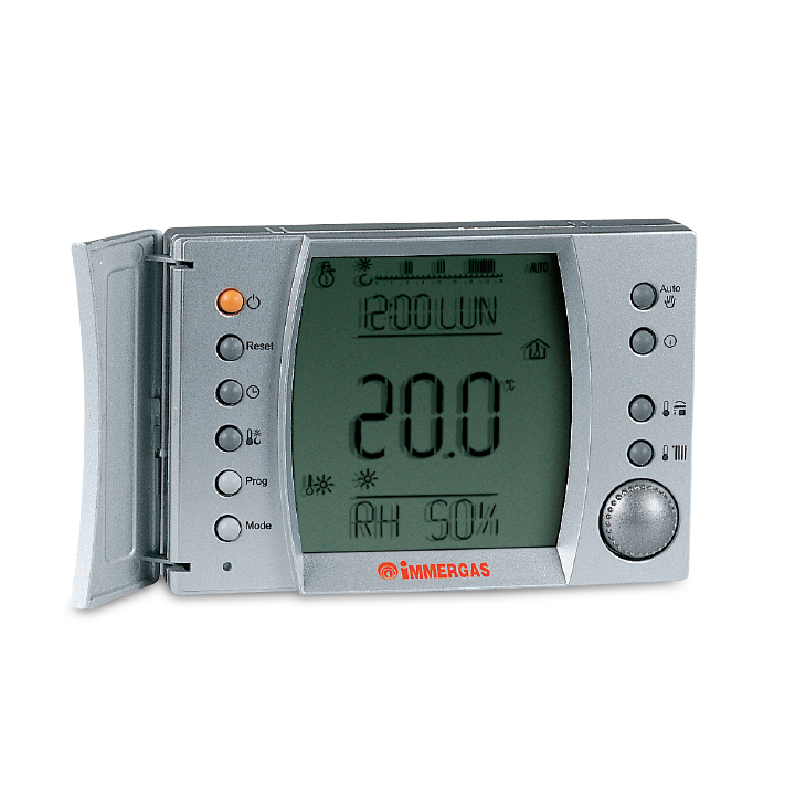 może (w zależności od ustawień) zmieniać temperaturę czynnika grzewczego w oparciu o różnicę pomiędzy nastawioną a odczytaną temperaturą wewnątrz pomieszczenia