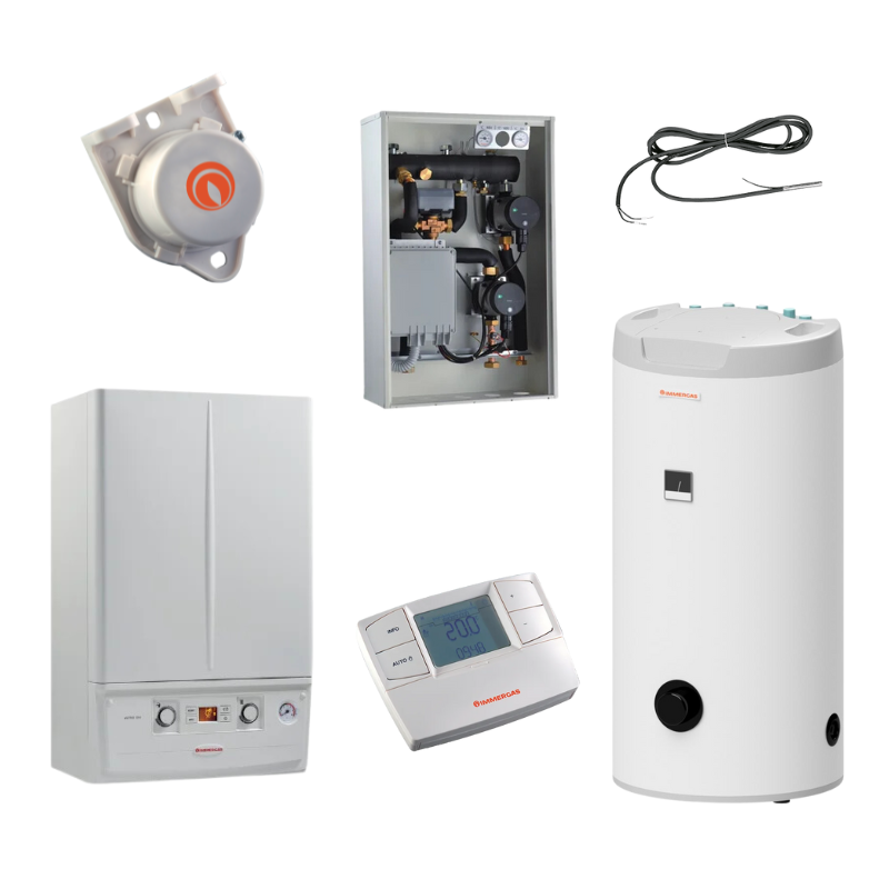 TERA 24 Komfort Plus 100 to zestaw z kondensacyjnym kotłem jednofunkcyjnym VICTRIX TERA V2 24 PLUS EU i zasobnikiem c.w.u. ze stali emaliowanej o pojemności 100 litrów i sondę temperatury do zasobnika. Dodatkowo zestaw zawiera termostat pokojowy
